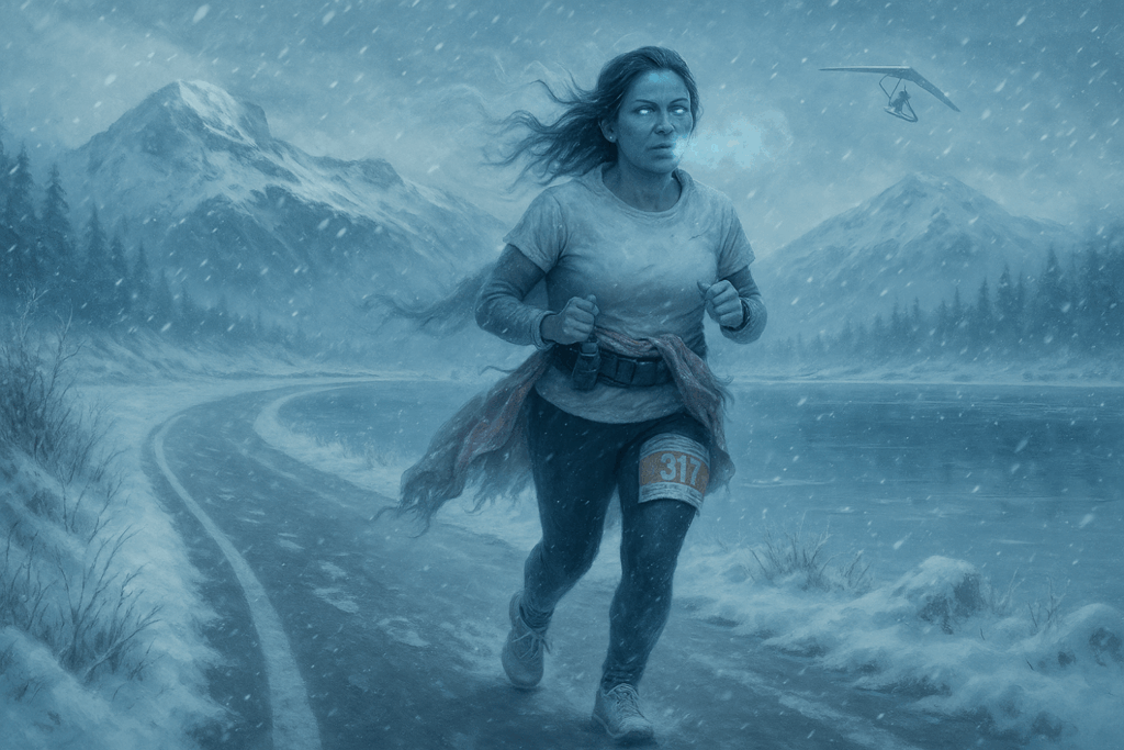 Heureusement, comme dans toute tragédie qui finit bien, notre partenaire surgit et fournit un dossard in extremis. Finalement sur la ligne, et en pleine possession de ses moyens, Lou démarre fort et se place directement en 4ᵉ position de notre contingent. Malgré un rythme élevé, elle se fait reprendre par John à 5 km de l’arrivée. S’ensuit alors une poursuite épique où Lou devient l’ombre menaçante qui hante désormais les nuits de notre président. Il raconte encore avoir senti un souffle glacial et être en proie à des sueurs froides à chaque fois que depuis, Lou le talonne à la machine à café.